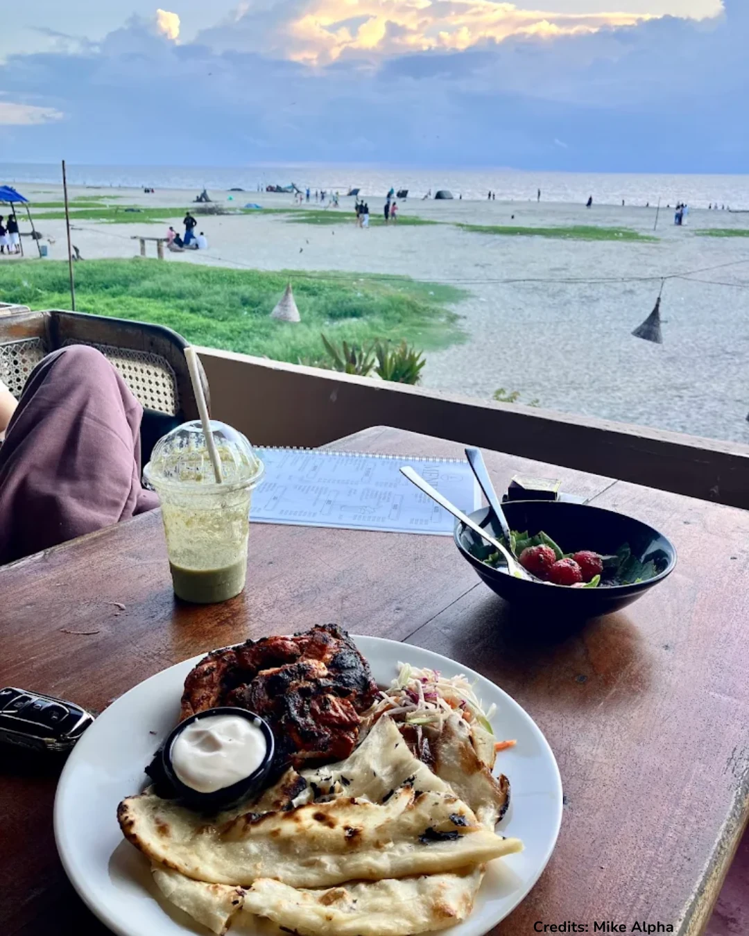 A beachfront café where you grab a table near the edge, wait for sunset, and let time slow down. The view does most of the heavy lifting.