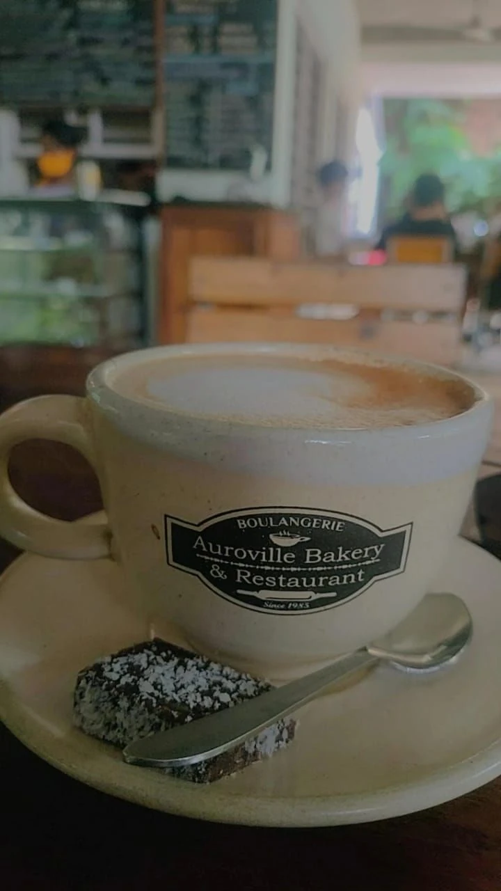 A laid-back garden café in Auroville known for fresh breads, croissants, good coffee, and a slow, peaceful vibe that makes you forget time.