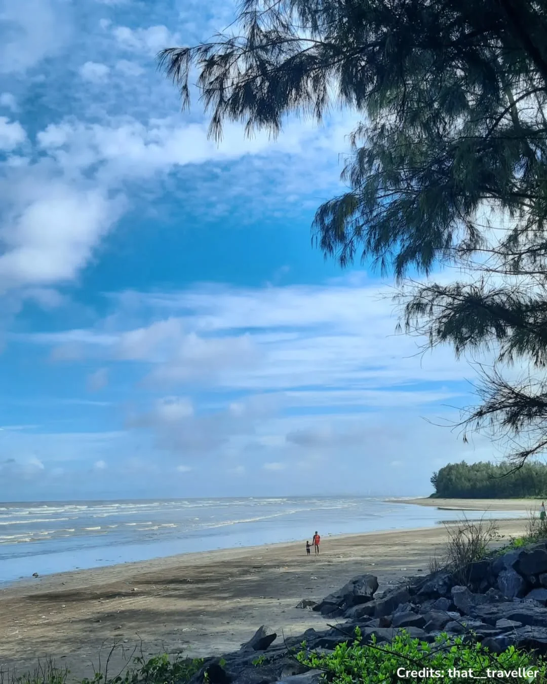 A quiet, clean beach with casuarina trees and zero chaos — perfect for sunsets, solo walks, and pretending life is an indie film with good background music.