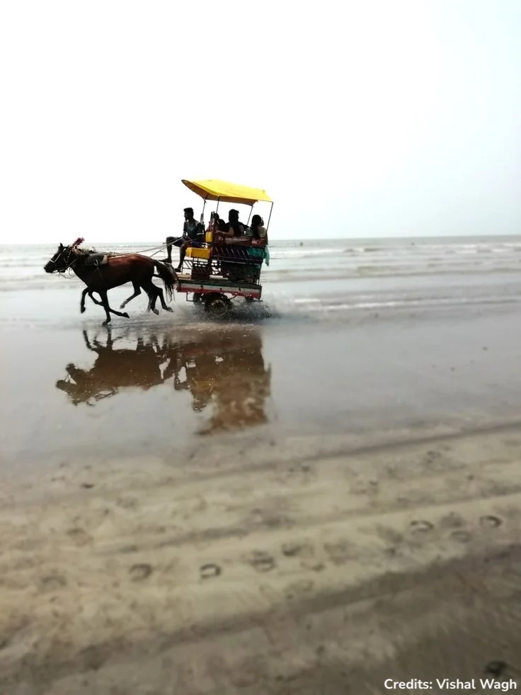 The most happening beach in Alibaug — a chaotic carnival of horse carts, street food, sunset views, and the ultimate low-tide mission to walk across the sea to Kolaba Fort.